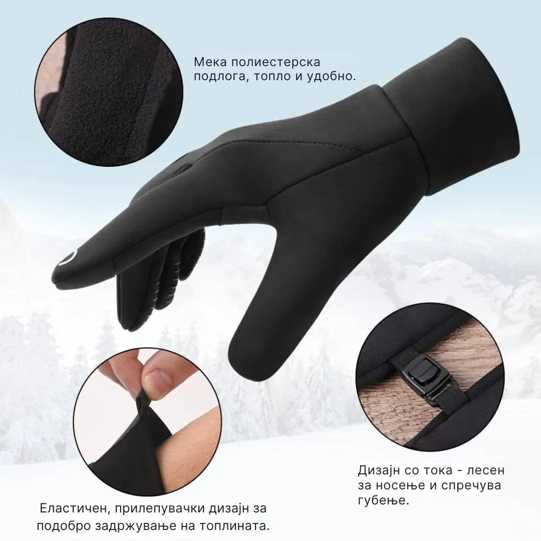 Водоотпорниот и ветроотпорниот материјал ги штити рацете од студ, додека меката внатрешна постава ја задржува топлината без потење.